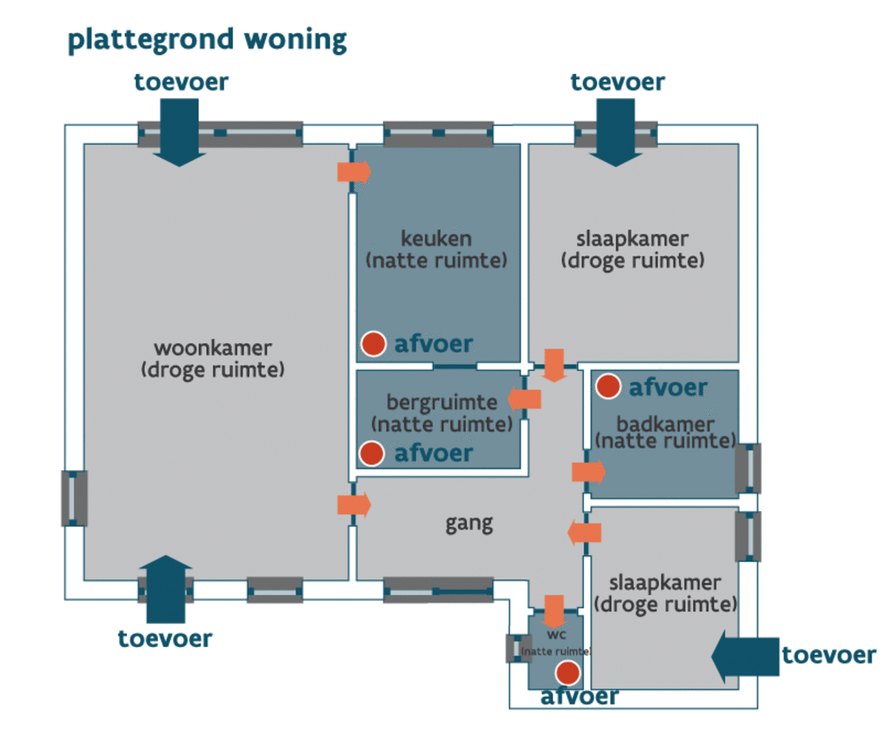 🟦 Ventilatiesysteem D – Volledig Mechanisch met Warmterecuperatie